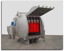 TMB is the new generation spray dyeing machine for hank on rotating arms with triangular shape. The movement of the hank during dyeing process is obtained by the rotation of the arm itself, without the need of the conventional rotating rod. In this way we avoid the friction between textile material and metal and consequently the most delicate types of yarns can be dyed, keeping unchanged their physical characteristics. The arms can be partially or totally extractable. Thanks to this feature it has been possible to realize arms with length of 1.200 mm which can be still easily loaded. Practically using the totally extractable arm it is possible to avoid to stop the machine for the loading/unloading operations, because with the optional manual trolleys the above said operations can be done even far away from the machine. TMB is manufactured in the following versions: 1-2-4-6-8-10-12-14-16-20-32 arms each machine. Obviously it is possible to reduce the load of half arm, one or more arms, and it is also possible to connect in parallel 2 machines of the same capacity. Recently we have introduced the TMBP which is working under a pressure of 0.4 bar for reaching temperatures up to 108°C at sea level. The interface with the loading station, the movements of the arms, the loading/unloading operations of the dyeing machines and the interface with final squeezing/drying phase, can be entirely robotized. Up to now we have already 1 TMB and 1 TMBP fully robotized plants. The TMB machines have been developed by MAIBO and their automation has been developed by OBEM. The MAIBO company is located in Vallemosso (BI) and is working in partnership with OBEM. |